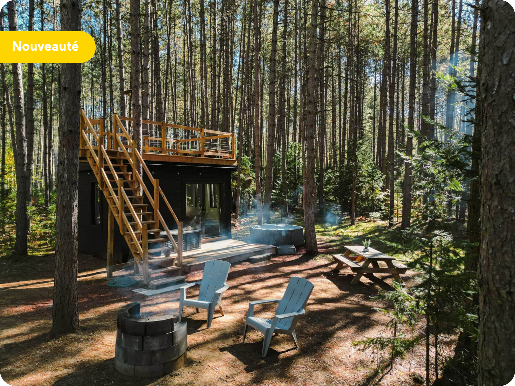 Niché au cœur d’une forêt de pins rouges, le Domaine Foresia propose six cabines au design distinctif, dont deux intègrent une expérience de jeu d’évasion développée en collaboration avec les Refuges KRYPT. Les décors, les objets et les indices font partie intégrante de l’aménagement des lieux, créant une immersion naturelle dans l’univers du jeu.
